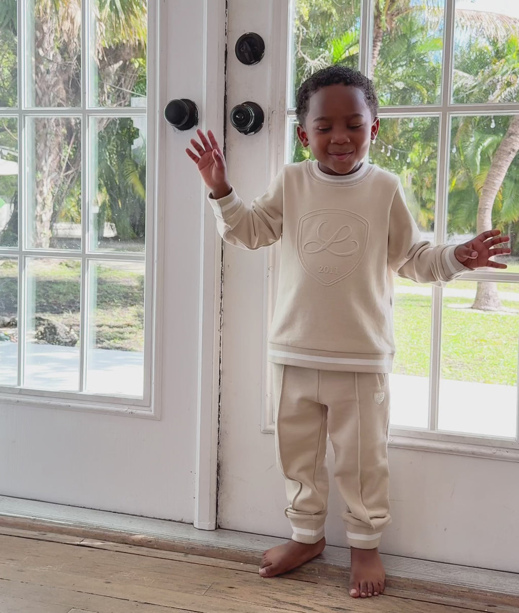 Keep it cozy with our Varsity Sweatshirt, crafted in a soft, breathable cotton blend for all-day comfort. This beige style features a relaxed fit, white detailing, and a playful front embossed logo. Complete the look with our matching sweatpants for a perfectly coordinated outfit.